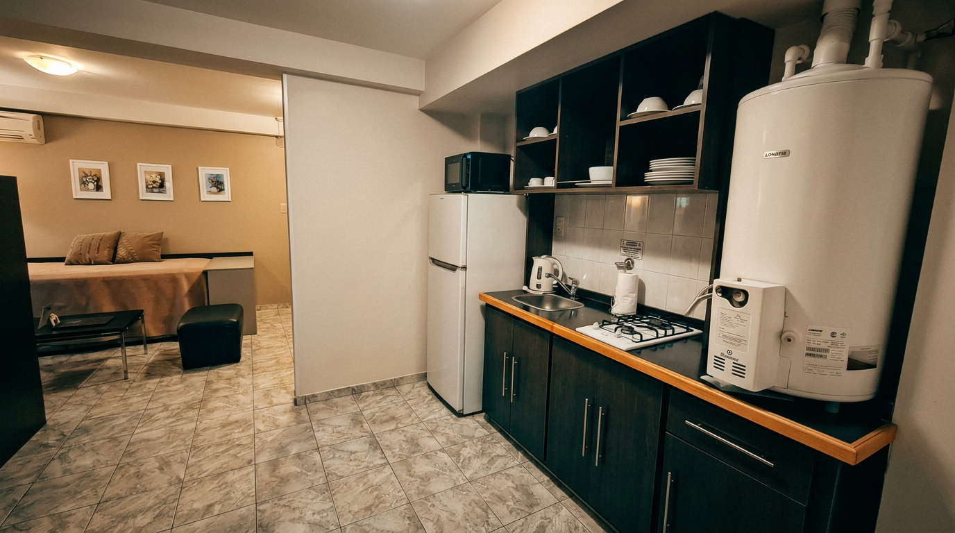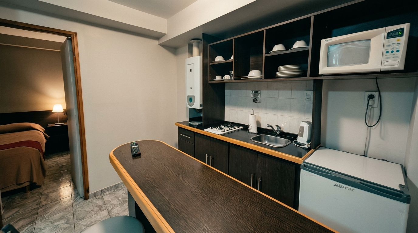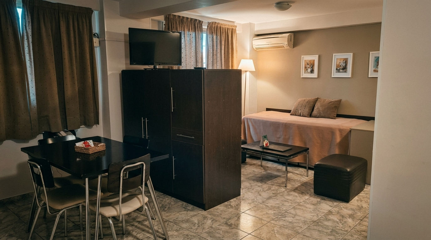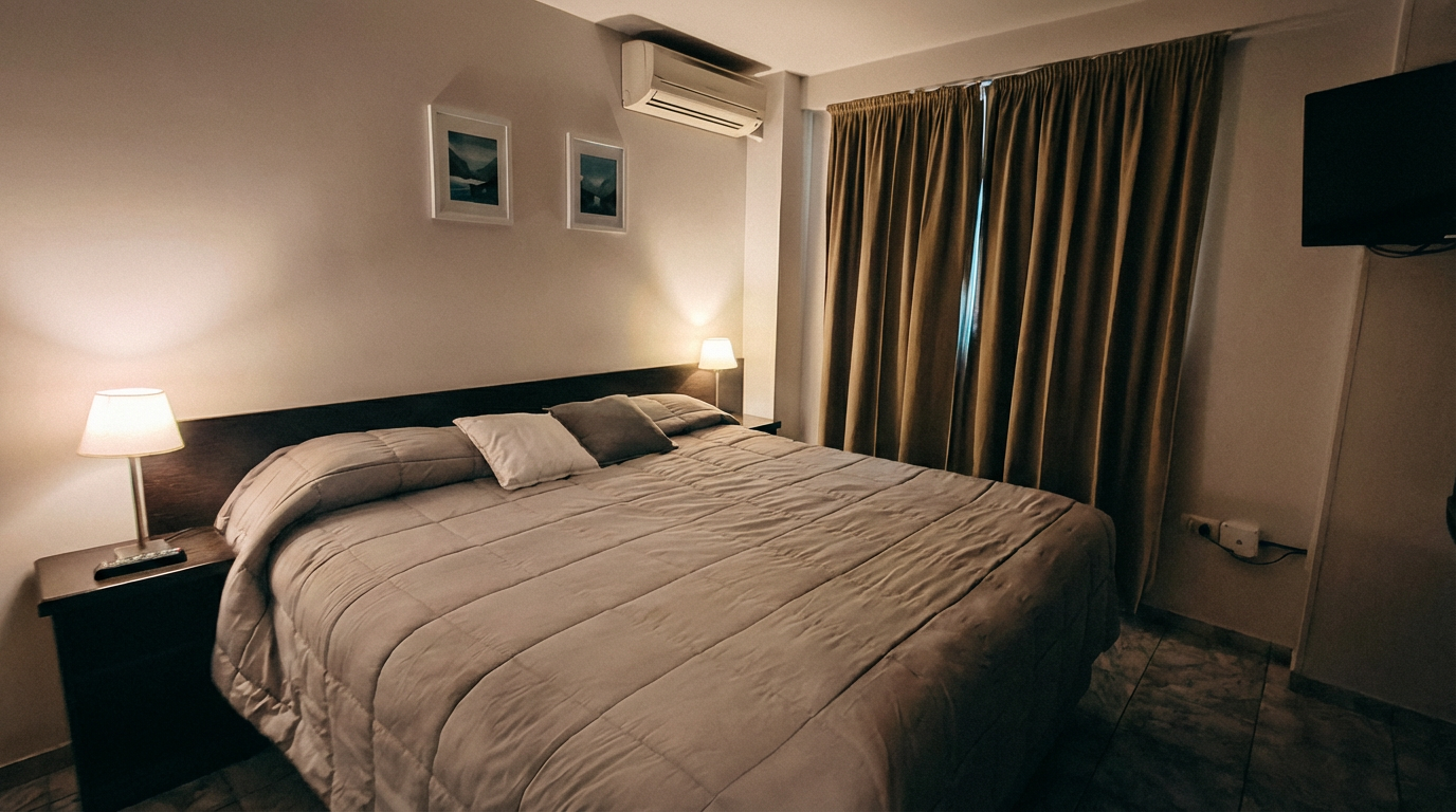 Departamento de dos ambientes, habitación y sala de estar. Puede reservarse como simple, doble o triple.