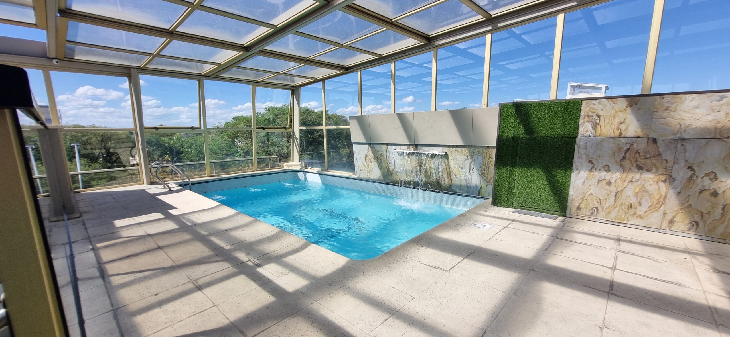 En los meses de invierno, la piscina se encuentra climatizada y cubierta. La piscina se encuentra en el edificio de enfrente al hotel en el segundo piso. (multiespacio)