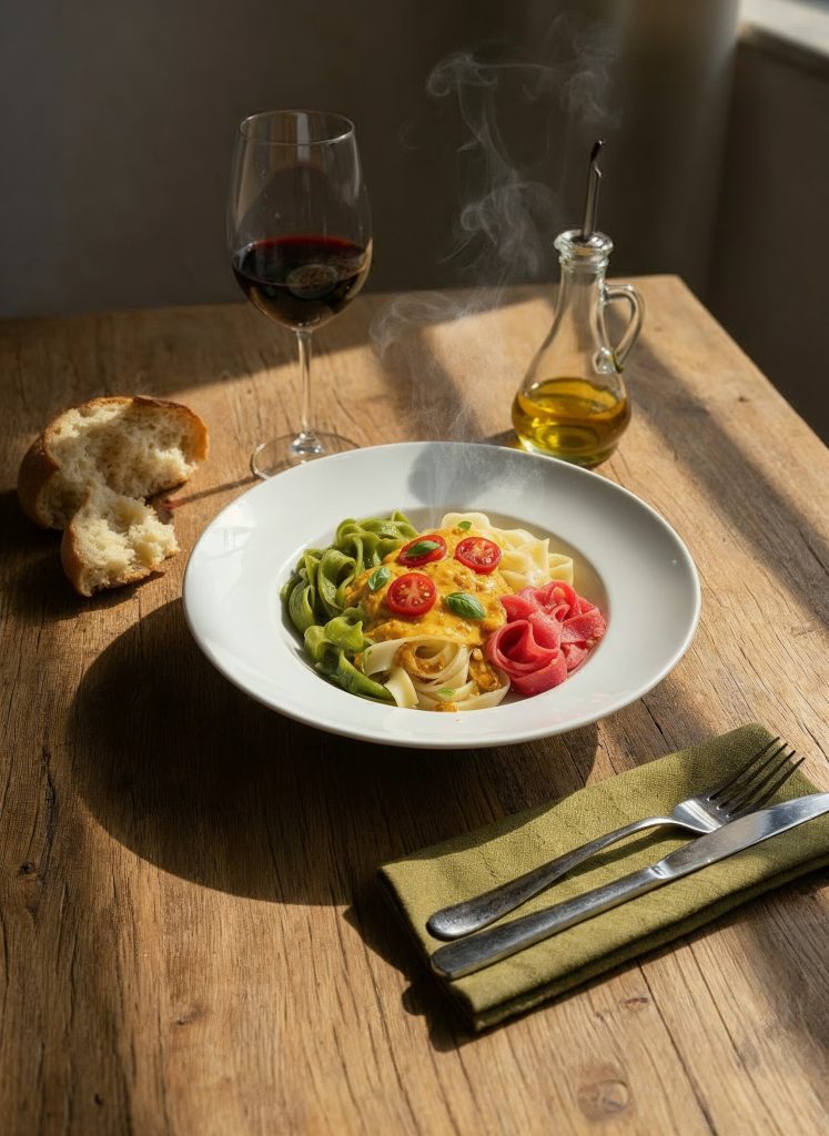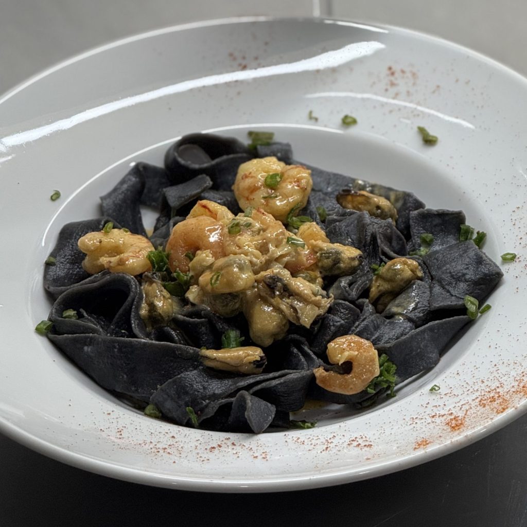 CINTAS CON TINTA DE CALAMAR Y SALSA DE MARISCOS
